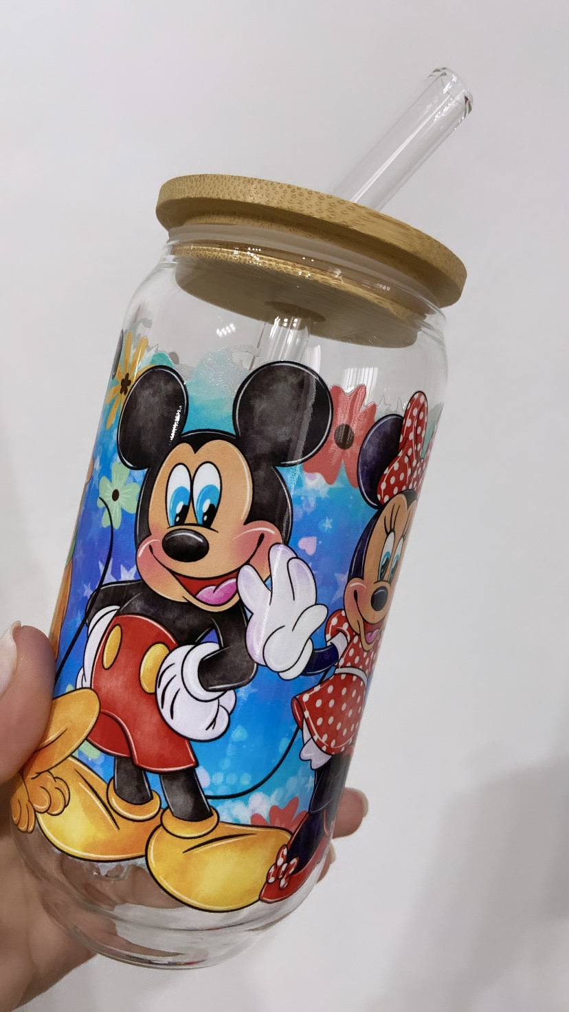 Taza de Vidrio 550 ml con tapa de bambú y pajita