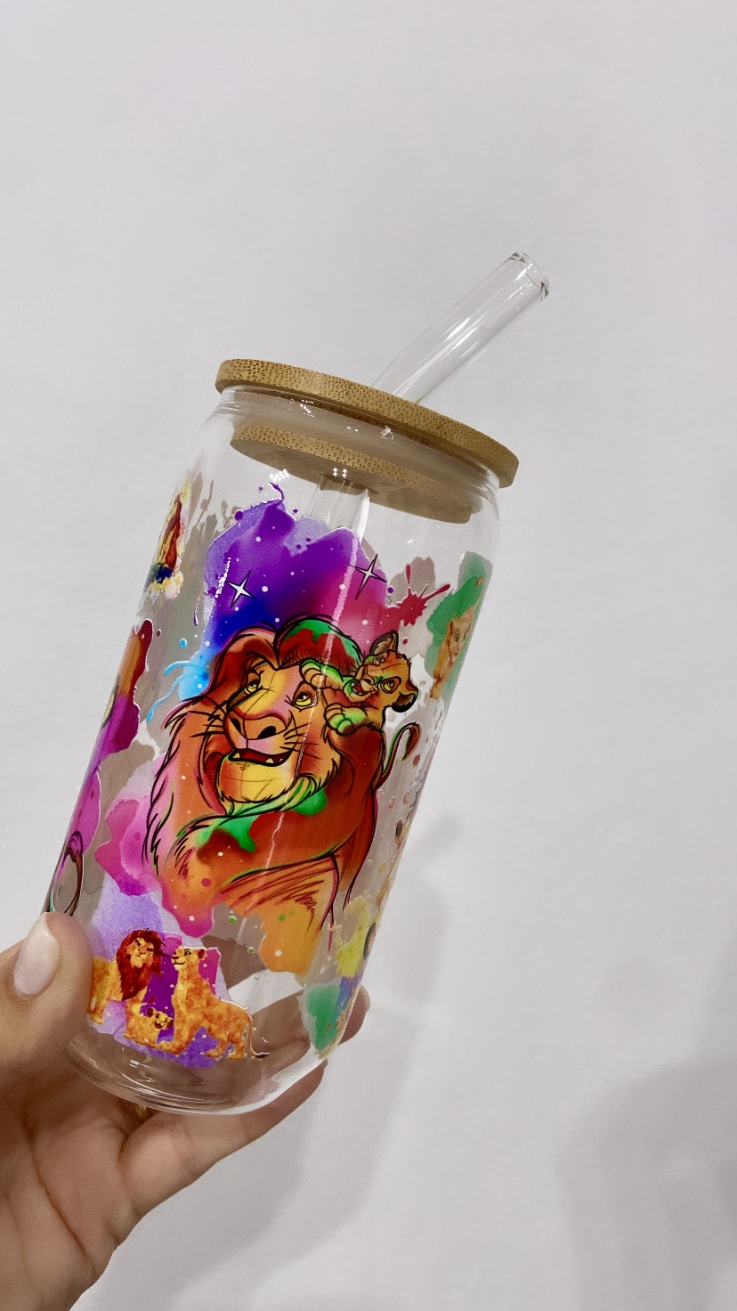 - Taza de vidrio con tapa de bambú y pajita de vidrio